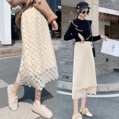 ケーキの層の刺繍のレースは半身のスカートの女性の2025早春の新型のフランスの小さい衆のA字の白い長いスカートをつなぎ合わせます。
