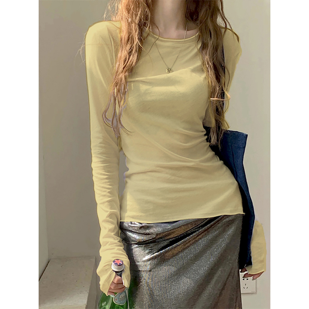 怠惰で、風に乗って、長袖の底のシャツを修理します。女性の春の薄いスタイルの雰囲気の中に上着の高級感のあるtシャツを掛けます。