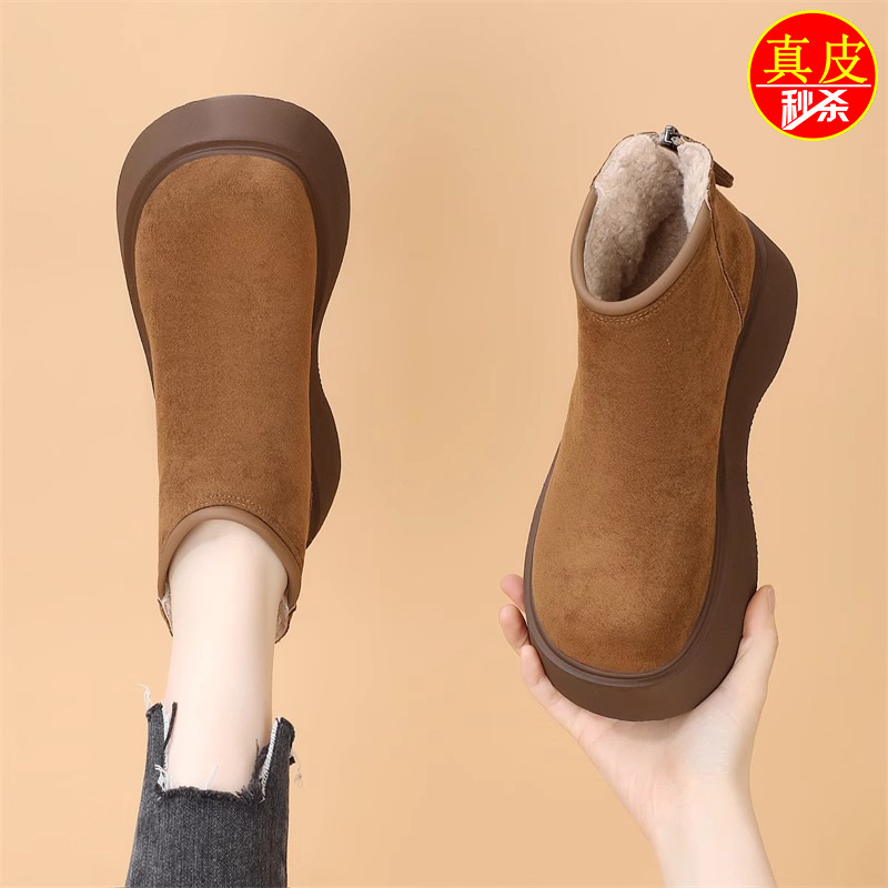 断コード赤青くねくね厚い底雪地靴女性冬ベルベット2024新滑り止め毛皮ショートブーツベーケン綿靴