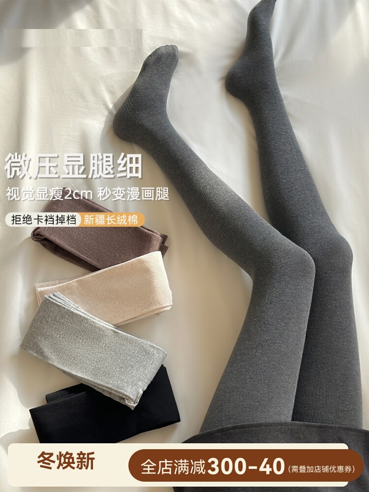 ベルベットのレギンスの女性は秋冬の圧力で痩せていて、ズボンの靴下の灰色の薄いベルベットが春の秋の金を踏んでも落ちない痩せた脚の靴下