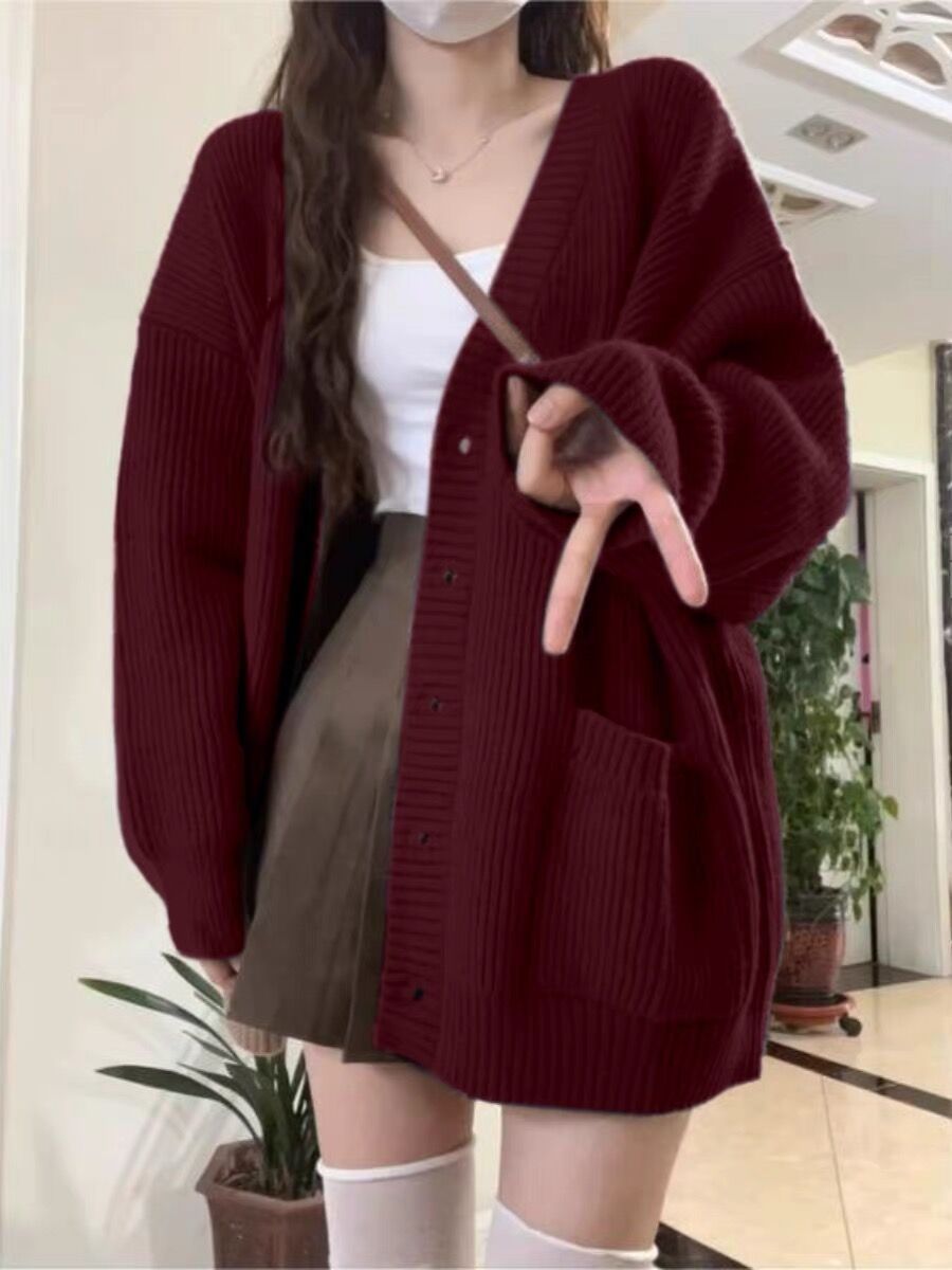 秋冬のゆったりとした怠惰な風がやせている毛のスカートの女性2024韓国版vネックのニットのワンピースの復古の膝の長いスカートを現します。