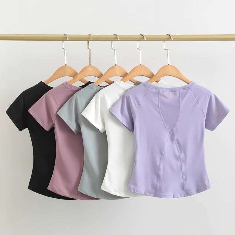 速乾性メッシュスポーツシャツ、スリムで通気性のあるヨガウェア、半袖プロランニングテニスフィットネストップス夏