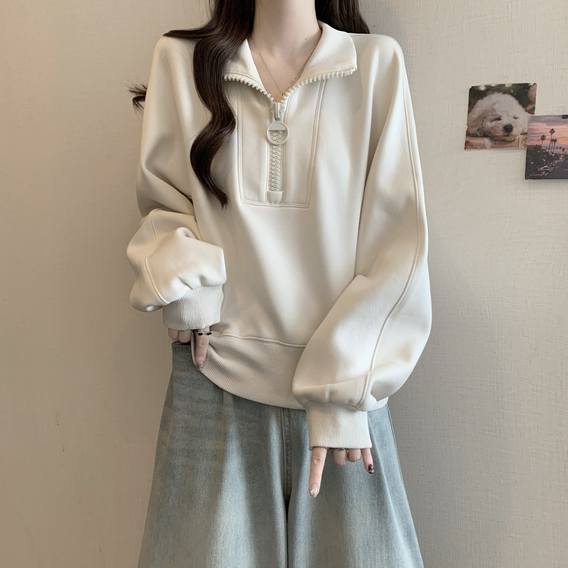 半ファスナーpolo襟の女性の春と秋の大きいサイズの中に厚い底のシャツを掛けて太っています。