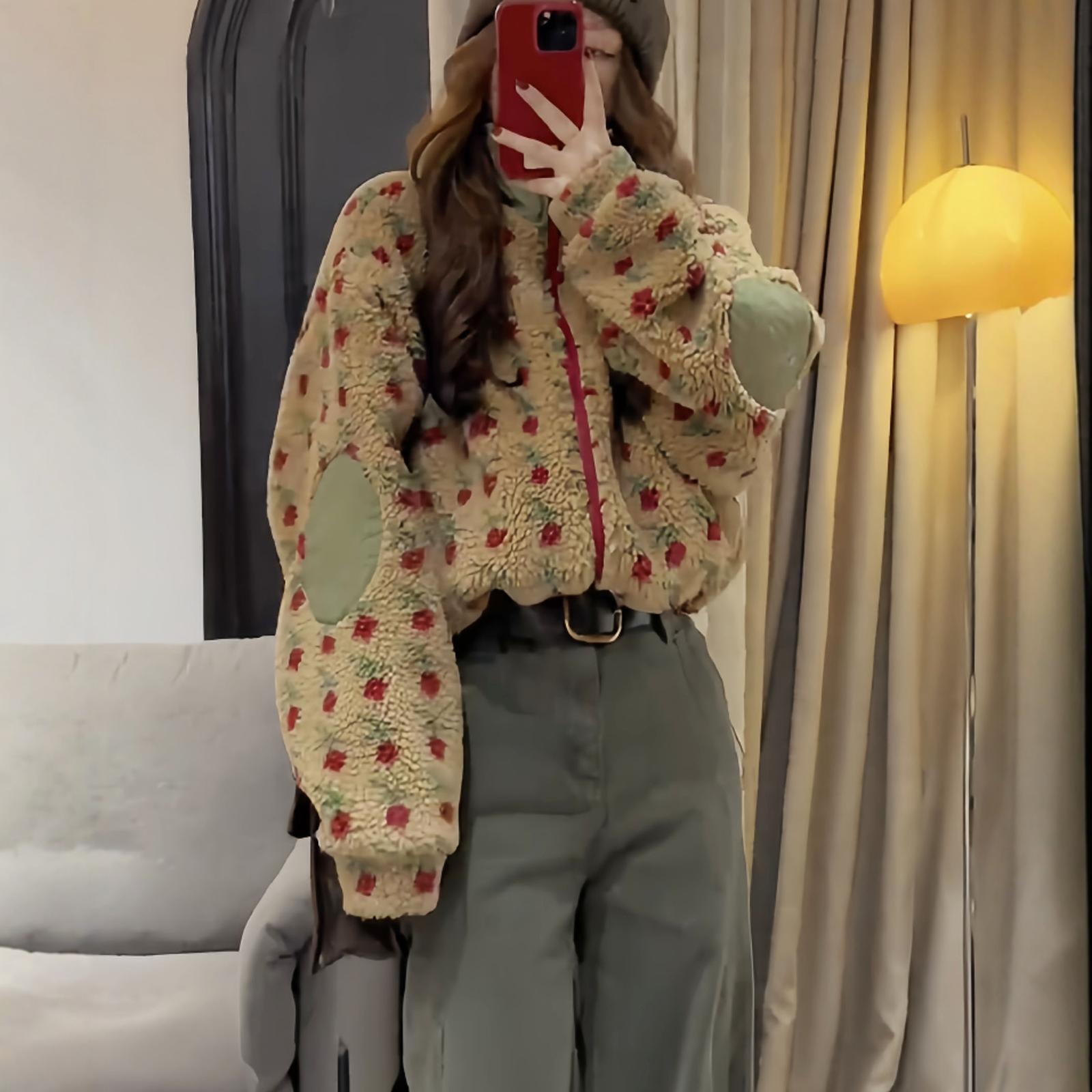 十三行のデザイン感の高い襟の子羊の毛の短いコートの女性の秋冬の新型の怠惰な風の減齢のファスナーの上着