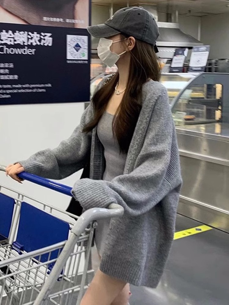 2023新型塩系軽熟風高級感灰色セーターコート女子秋服茶系ニットカーディガン