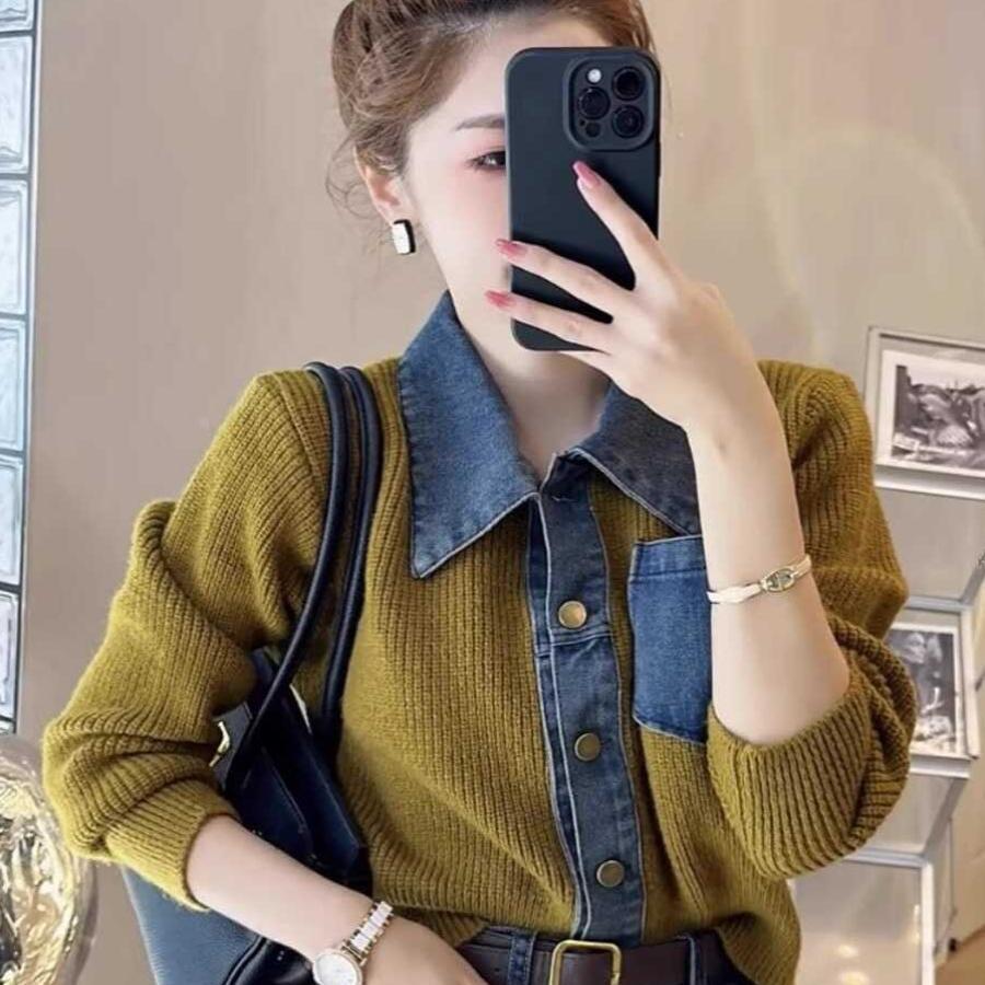 みんなのデザイン感のあるデニムはPolo襟のセーターをつなぎ合わせます。