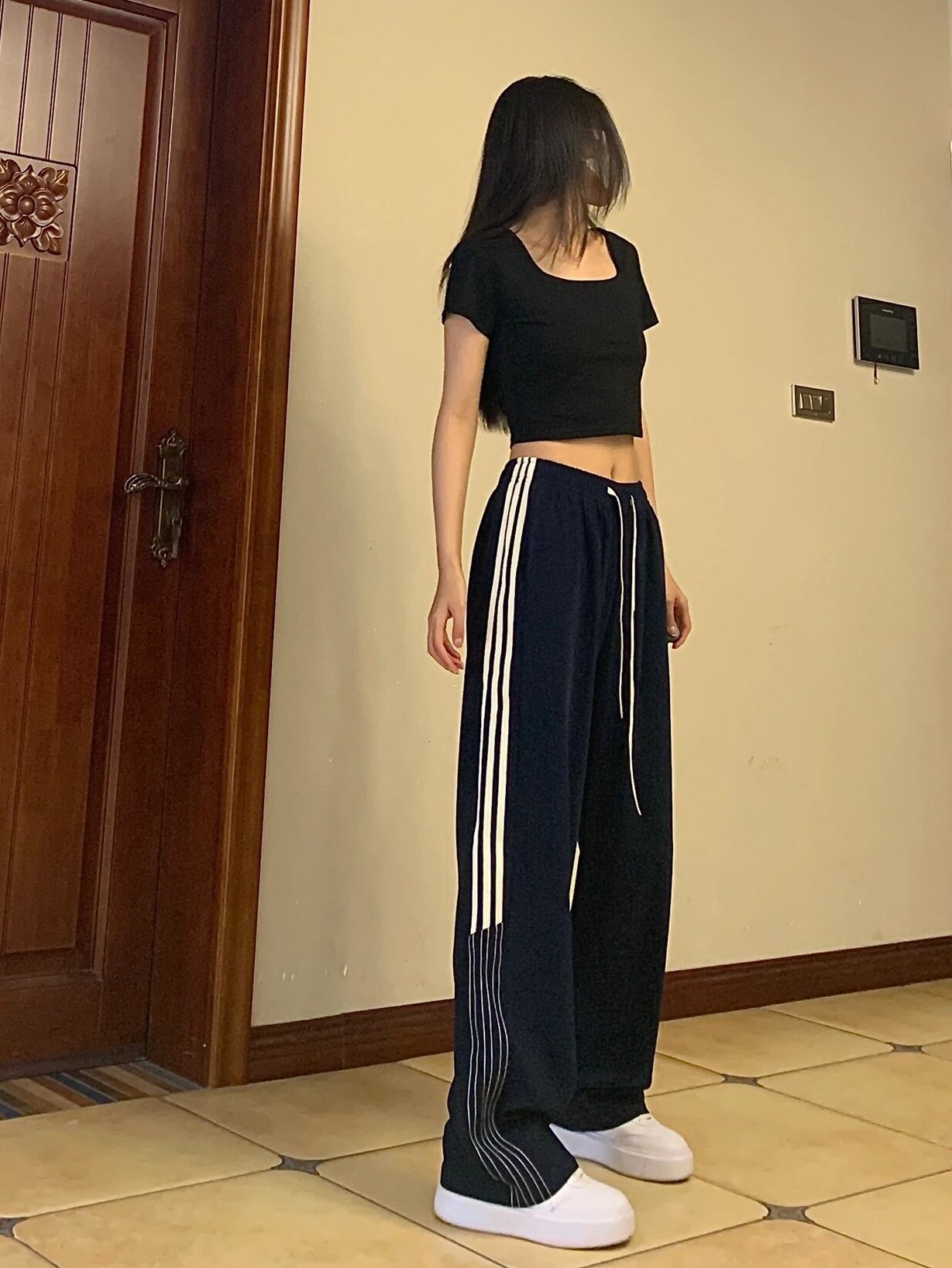 175背が高くて、アメリカのサイドストライプのスポーツパンツを長くします。