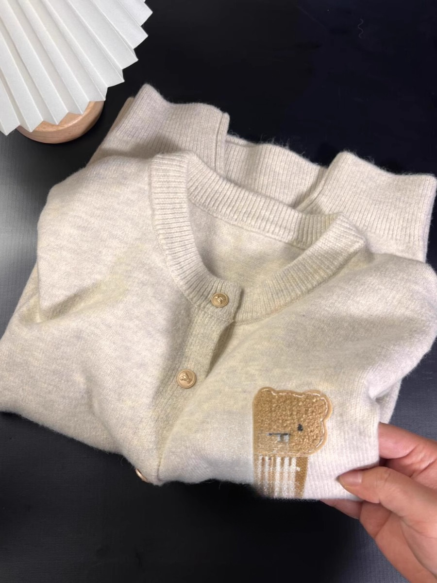 ニットの秋は柔らかいモチモチのカーディガンの中に韓国版の熊のかわいいセーターのコートの学院の風のchiの上着を掛けます。