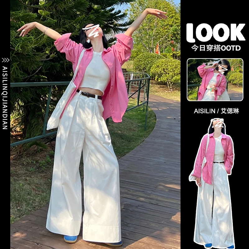 2024早秋の新しいフレンチピンクのシャツのコート女性の高級なデザイン感の小さい人たちの日焼け止めの薄いシャツの上着