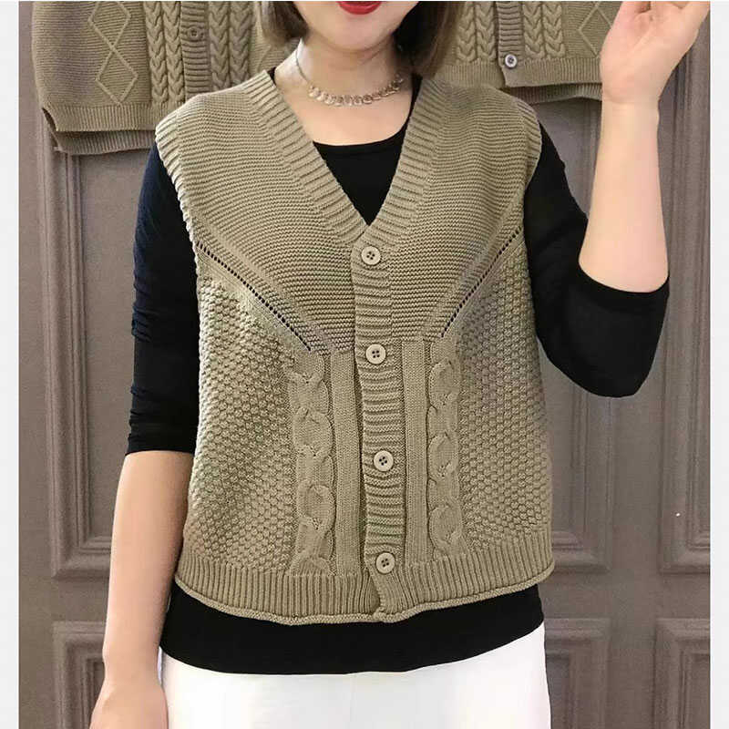 ニットベストレディースC2024年春夏新作ファッションvネックボタンノースリーブショートトップレディース減齢ママ服