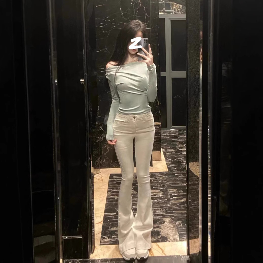 175背の高いロングバージョン180ハイウエストの白いマイクロラッパのジーパンの女性の春と秋の弾力のまっすぐな筒の修身のトランペットのズボン