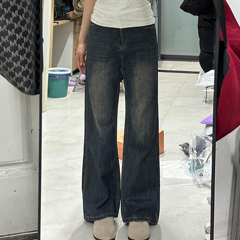 足の広い足のジーパンの女性の秋の大きいサイズを貼っていません。