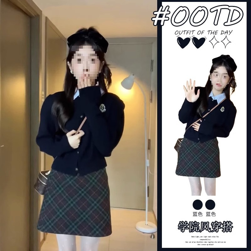 フランスのワンピースの子供2024早秋の新型の小さい長袖のカーディガンの気質の半身のスカートのスーツは着ます。