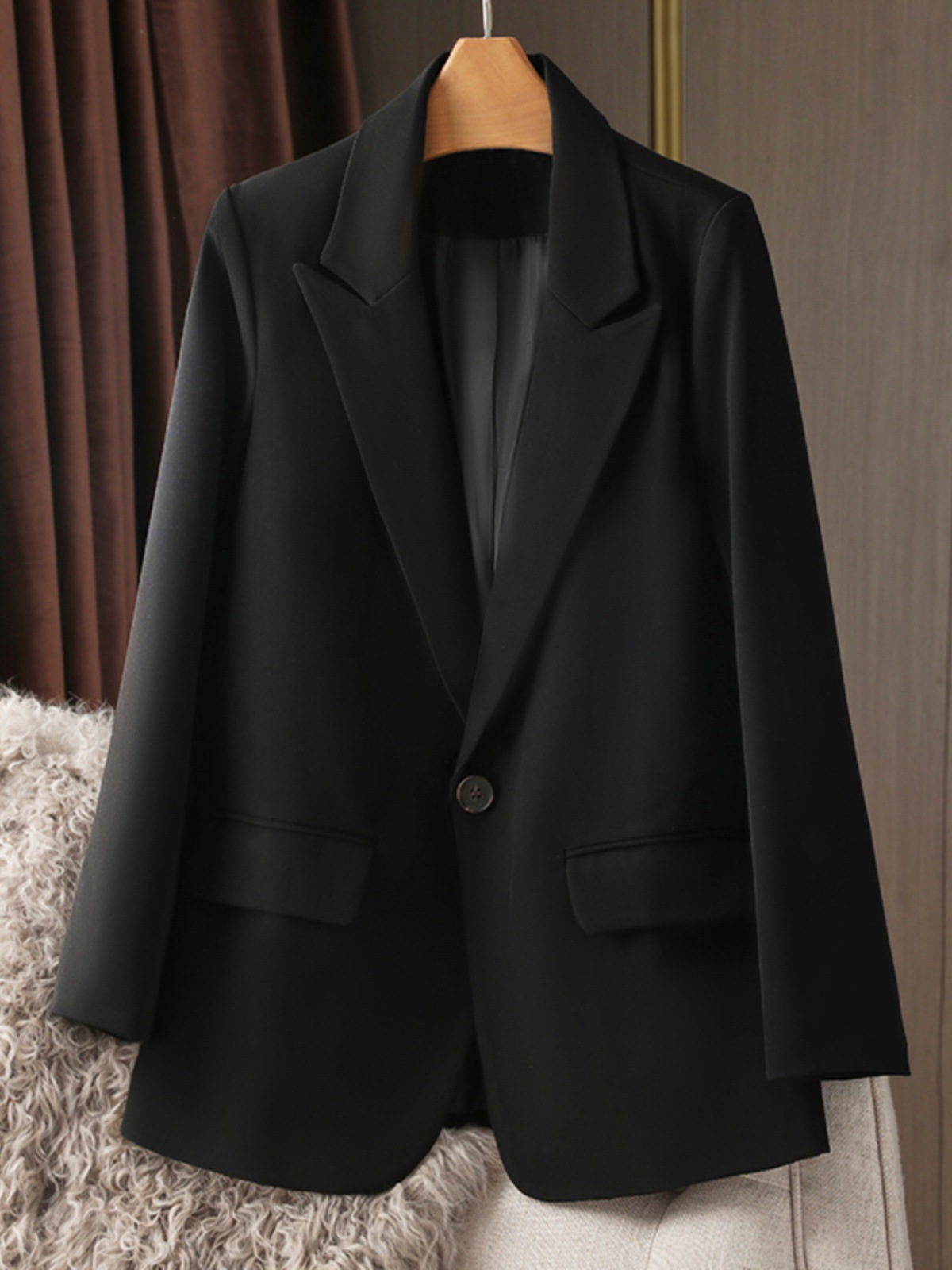春と秋の職業服の小さいスーツのコートの女性の2024年の新型の事務の面接の1粒は黒色のスーツの上着を掛けます。