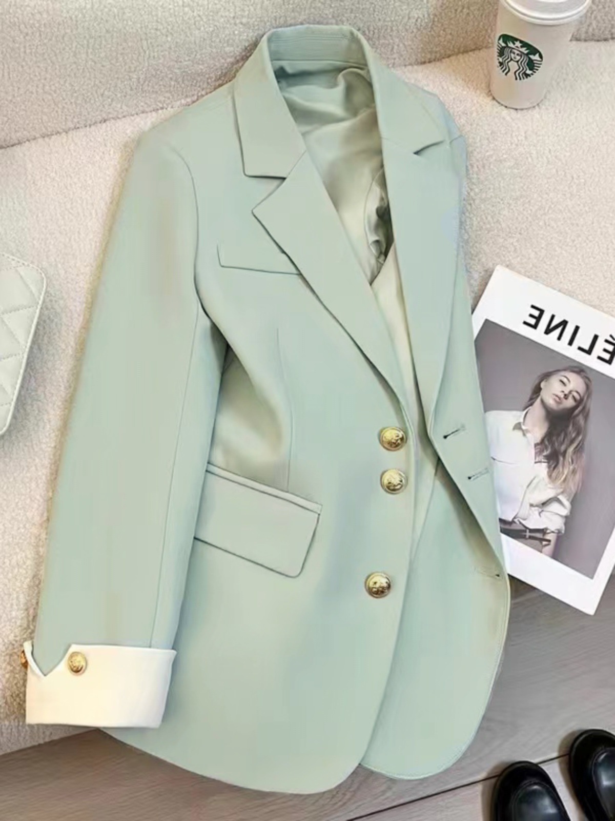 2024春装新型高級デザイン感ミント緑スーツ女性韓系洋気ブランドカジュアルスーツ
