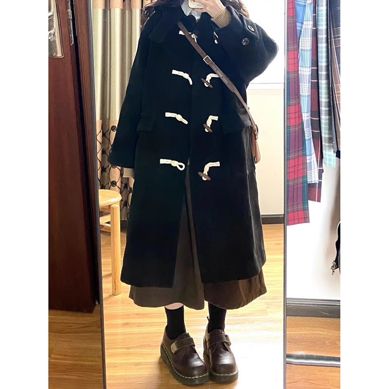 反季清倉両面羊絨毛は、大女秋冬2024新高級感のある小柄な牛角ボタンのコートですね