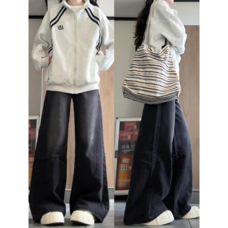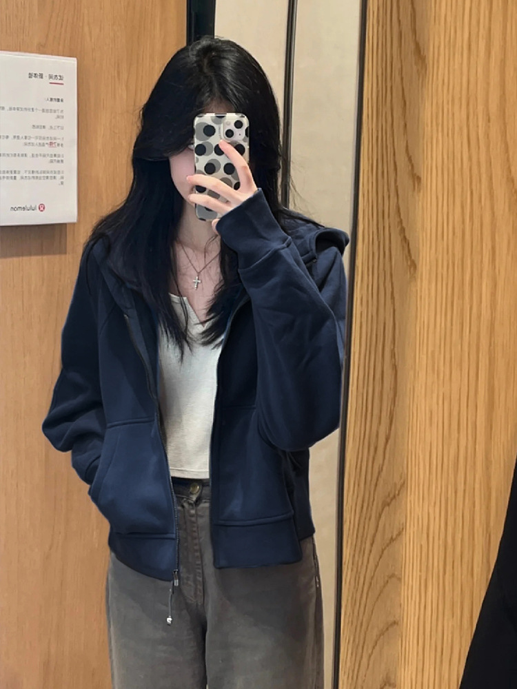 綿の白い灰色の衛衣の女性の春と秋の韓国版のゆったりしているbfのファスナーは帽子のカーディガンの上着と一緒に中の長さを合わせます。