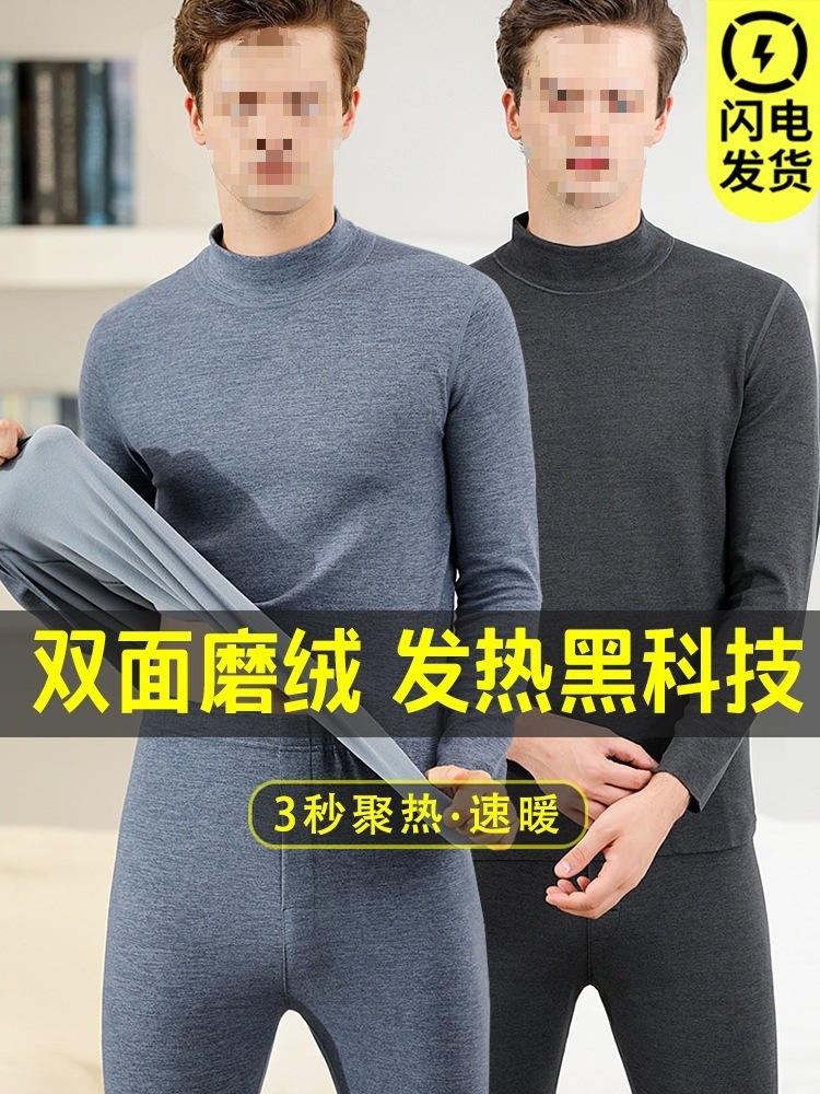 中高襟保温下着男性セットは、ベルベットの徳を厚くして痕跡のない発熱秋衣秋ズボンを底にして綿のセーターを冬にする