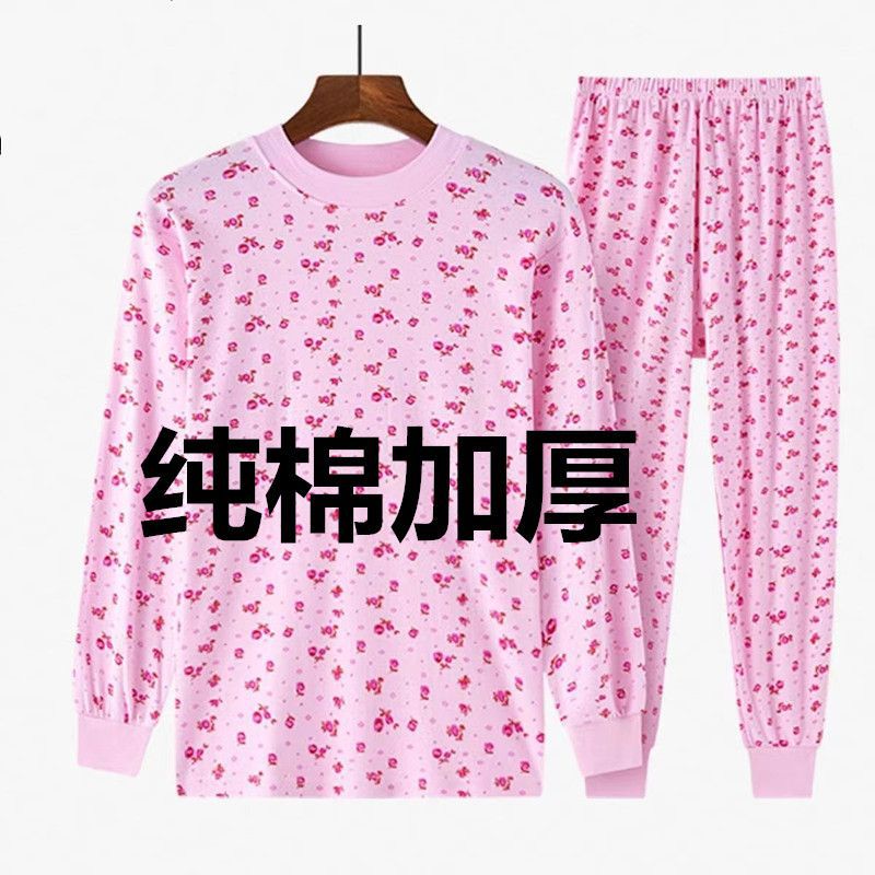 100綿の中高年の女性の秋の服の秋のズボンの保温の下着のお母さんの高い丸首の綿の大きいサイズの綿のセーターのスーツ