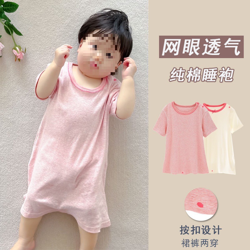 赤ちゃんの夏の薄い綿のパジャマの半袖の骨なしのパジャマの女性の赤ちゃんの日系のかわいいパジャマのスカートの蹴り防止の連体の服
