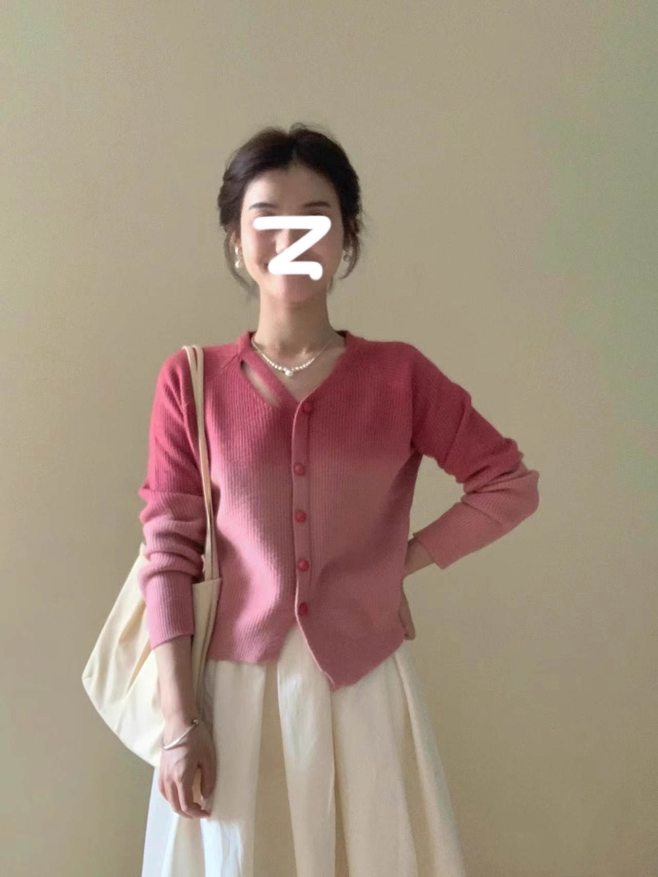気品名媛小香風vネックの柔らかいモチモチのセーターのコートの女性2024早秋の新型ミンクのゆったりしたニットの上で潮があります。