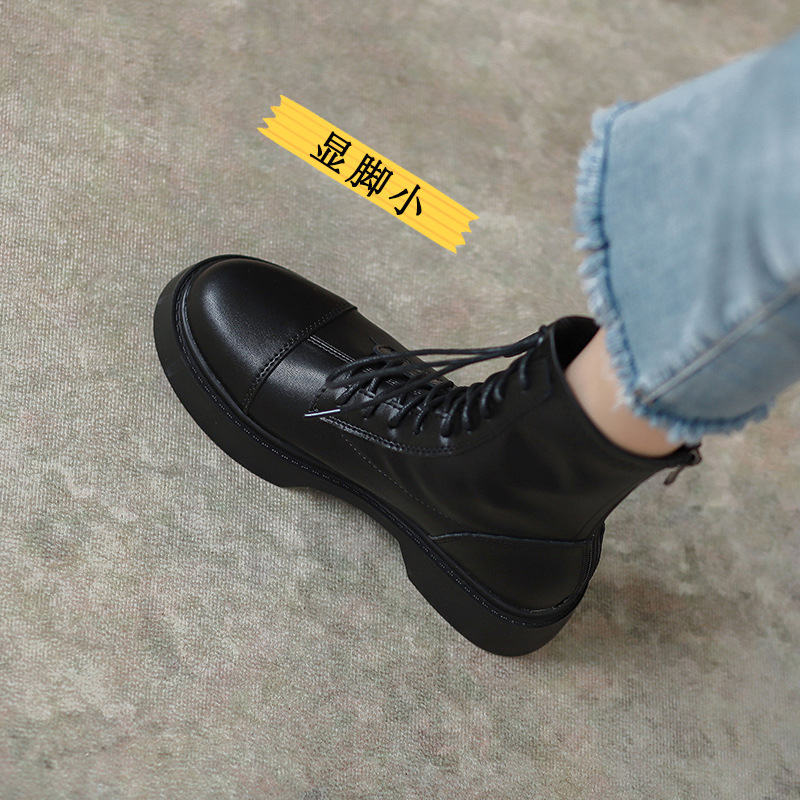 本革のマーティンブーツの女性は2024年春秋の新型の小さい子のショートブーツの中で高くなります。
