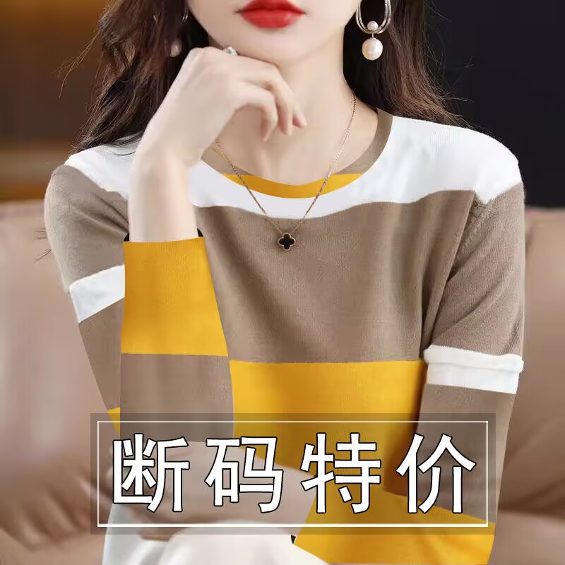 在庫一掃漏れ ~ 2023春秋の新型のお母さんは長袖の丸首の底のシャツを詰めて腹を覆います。