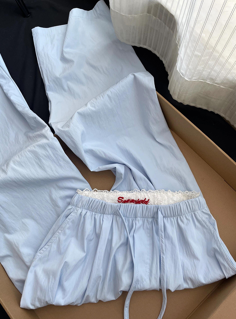 韓国版hiphopブルーハイウエストカジュアルパンツ女性秋のゆるい薄いデザイン感のある小衆バレエ風のワイドパンツ
