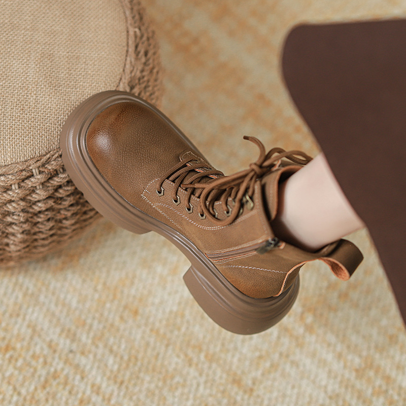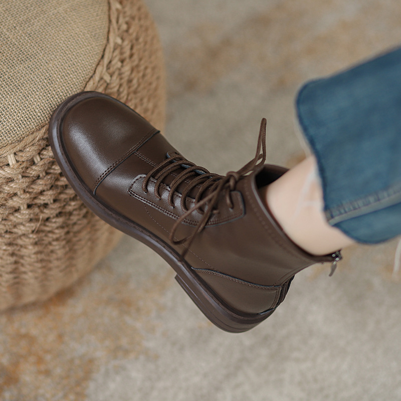 本革の厚い底のマーティンの靴の女性の2024年の新型の春と秋の単靴の洋気の茶色の小さいショートブーツのやせている靴の靴