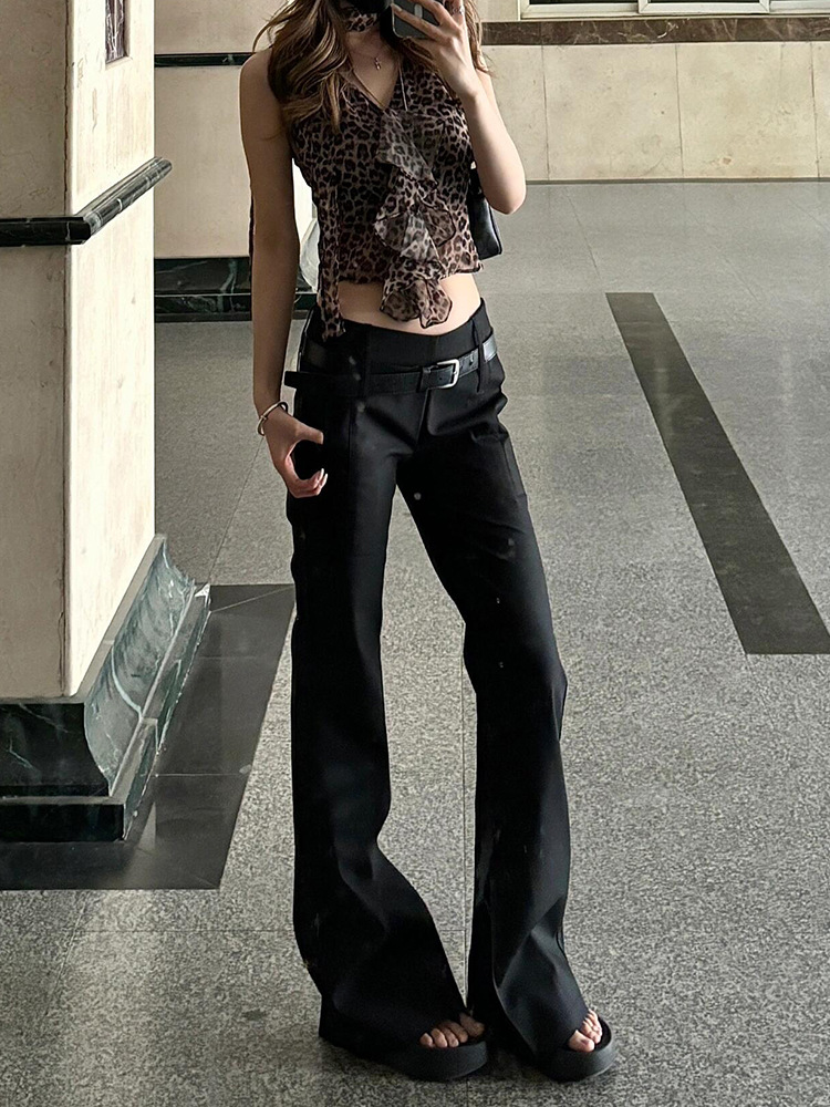 黒の微ラッパスーツのズボンの女性の夏のアメリカのギャルは身を修めて痩せています。