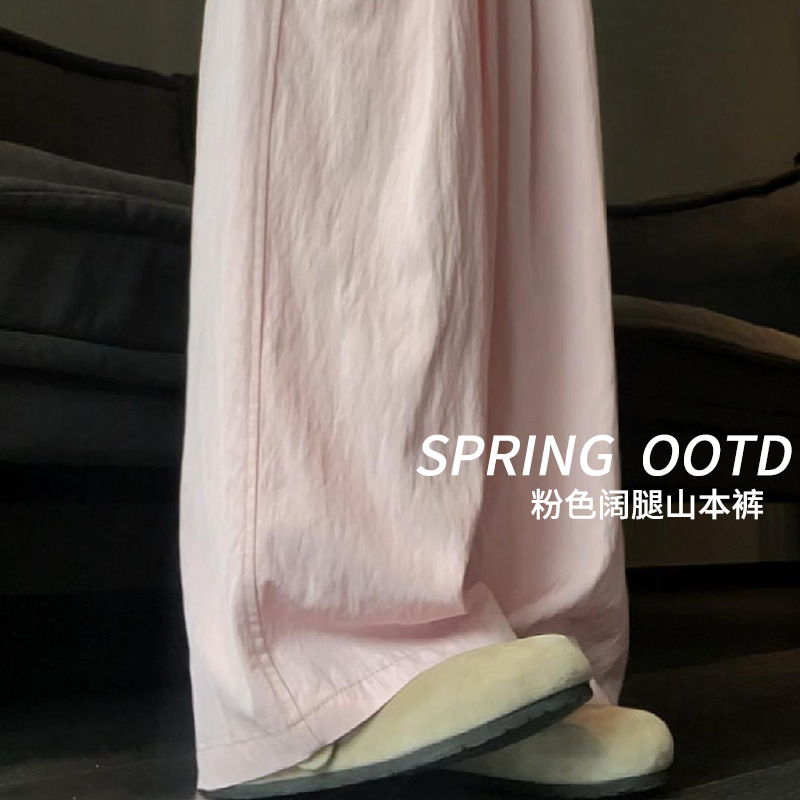 ピンクの散歩の曲がった山本のズボンの女性の春と秋の夏の2024の新型のカジュアルな垂れ下がった感じの小さい背の氷の糸の綿の麻の広い足のズボン