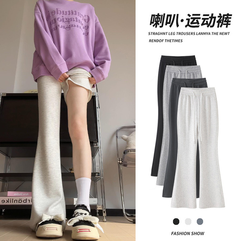 グレーのマイクロラッパのズボンのスポーツズボンの女性の春秋の2024の新型の夏の高腰の馬蹄のズボンのカジュアルな小さい体の衛のズボン
