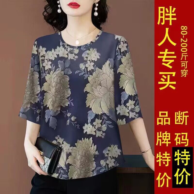 在庫一掃漏れ ~ コーナーカット女性袖2023新韓国版プリントが桑シルクtシャツの上着を真似ている
