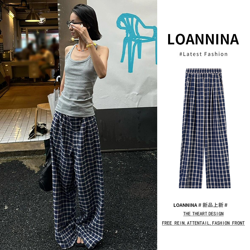 レトロな香港風の紺色の格子縞のズボンの子供の夏の薄いストレートのカジュアルなズボン