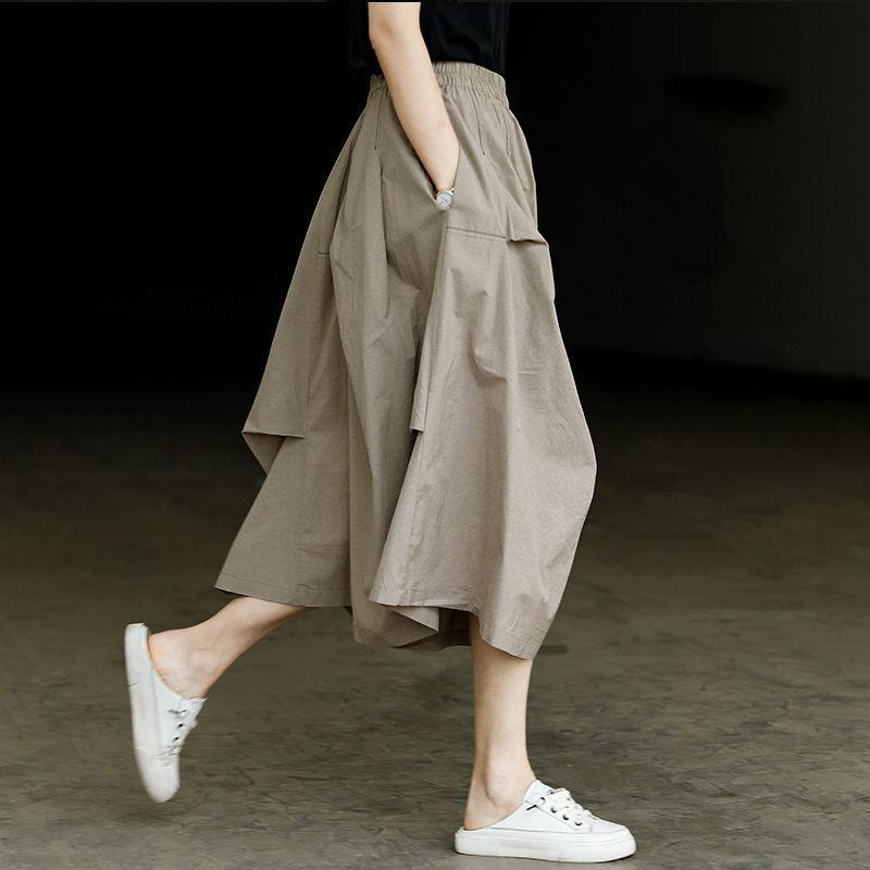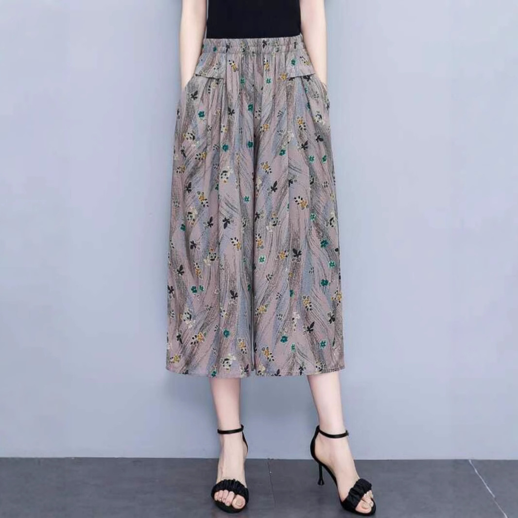 中高年ママ向け夏用薄手綿シルクキュロット、大きいサイズのスリムパンツ、カジュアルドレープワイドパンツ