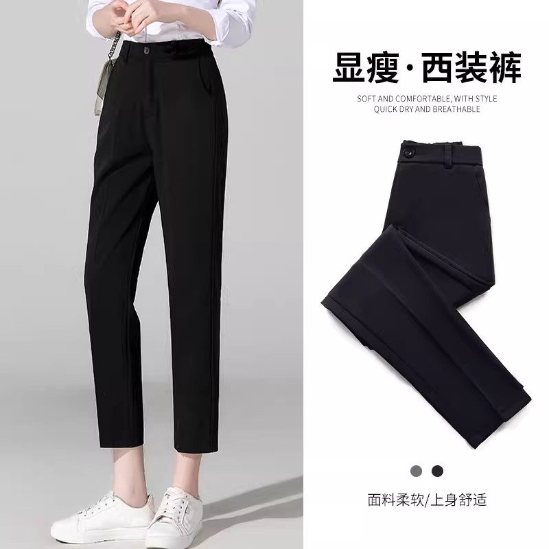 小さいズボンの女性のタバコの管のズボンの女性の工装のストレートなズボンの2025新型の春夏の9分の小さい背の高い腰のスーツのズボンの女性