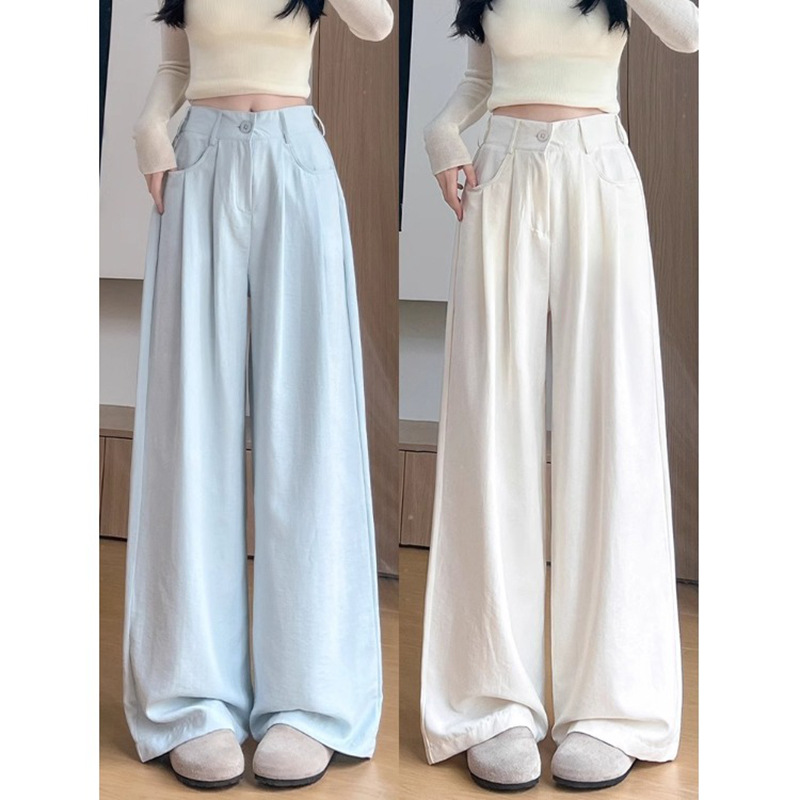 女性のためのワイドレッグパンツ 2025 春の新しいハイウエストカジュアルスーツパンツハイエンドドレープストレートレッグルーズスリミングフロアレングスパンツ