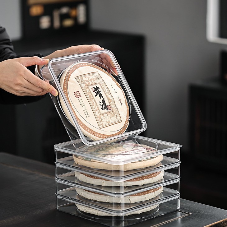プーアール茶棚、プラスチック製茶餅箱、防塵透明茶ディスプレイラック、茶箱、茶セットアクセサリー収納