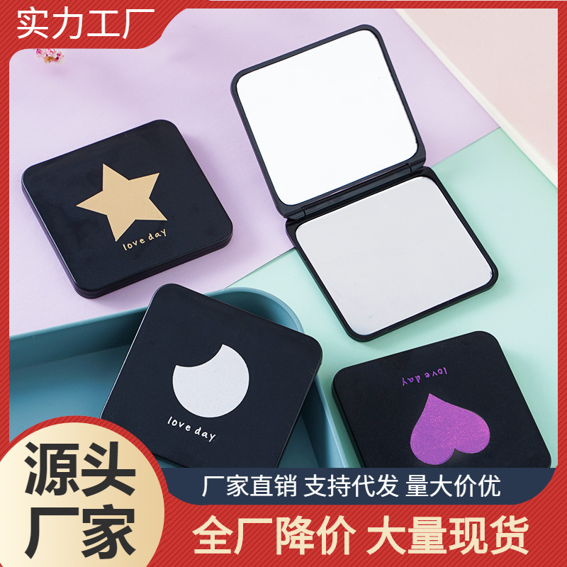 ミニ化粧鏡アウトドア両面ミラー学生かわいい折りたたみ両面ミラーシンプル小さな四角いミラー