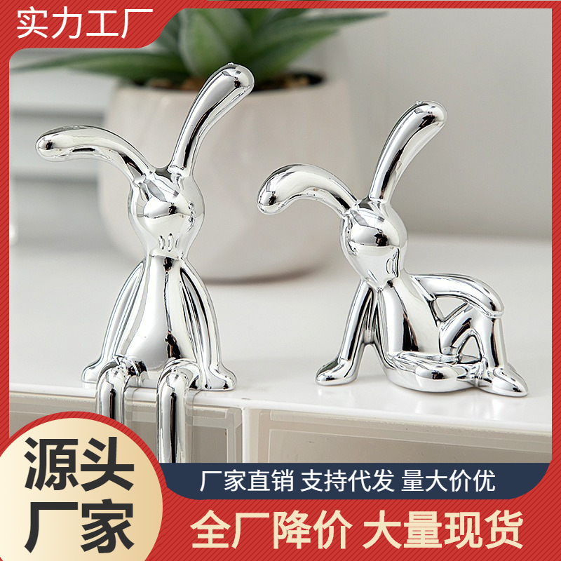 立体ウサギの置物家庭用の豪華な座り方