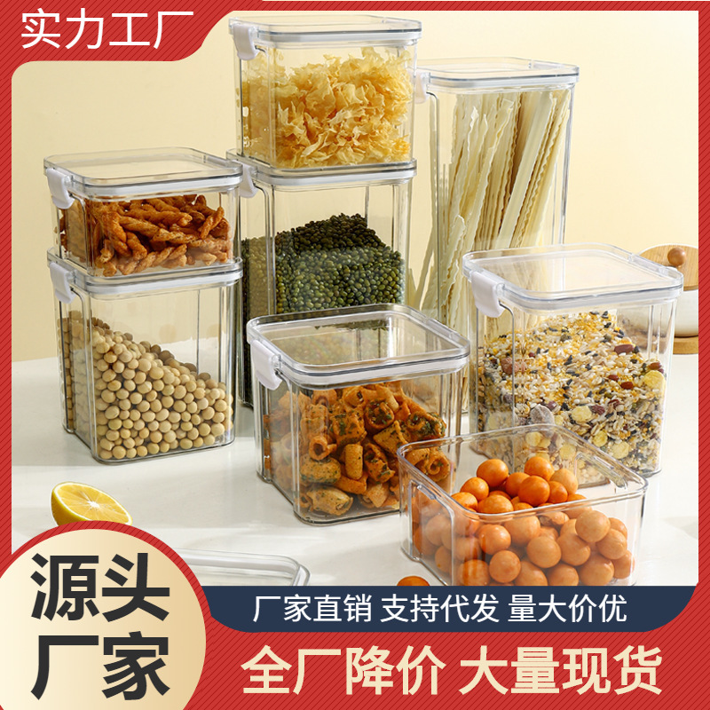 透明な五穀の雑穀の収納箱の台所の四角形のプラスチックの防湿の密封の缶の厚い間食の乾燥した商品のお茶の缶