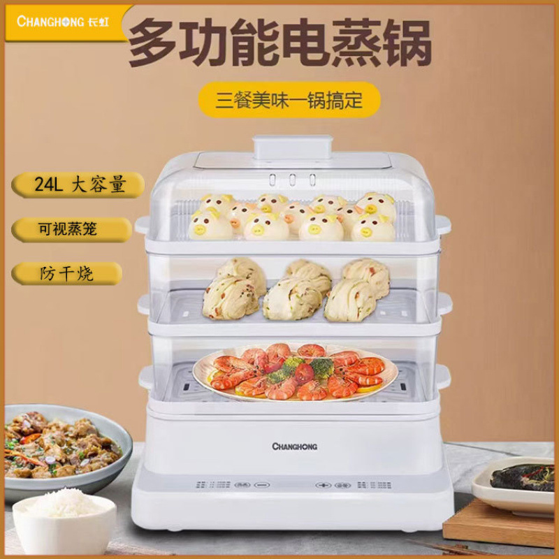 長虹同金24L電気蒸し器で家庭用三層多機能大容量蒸し器を蒸して煮込んだ朝食