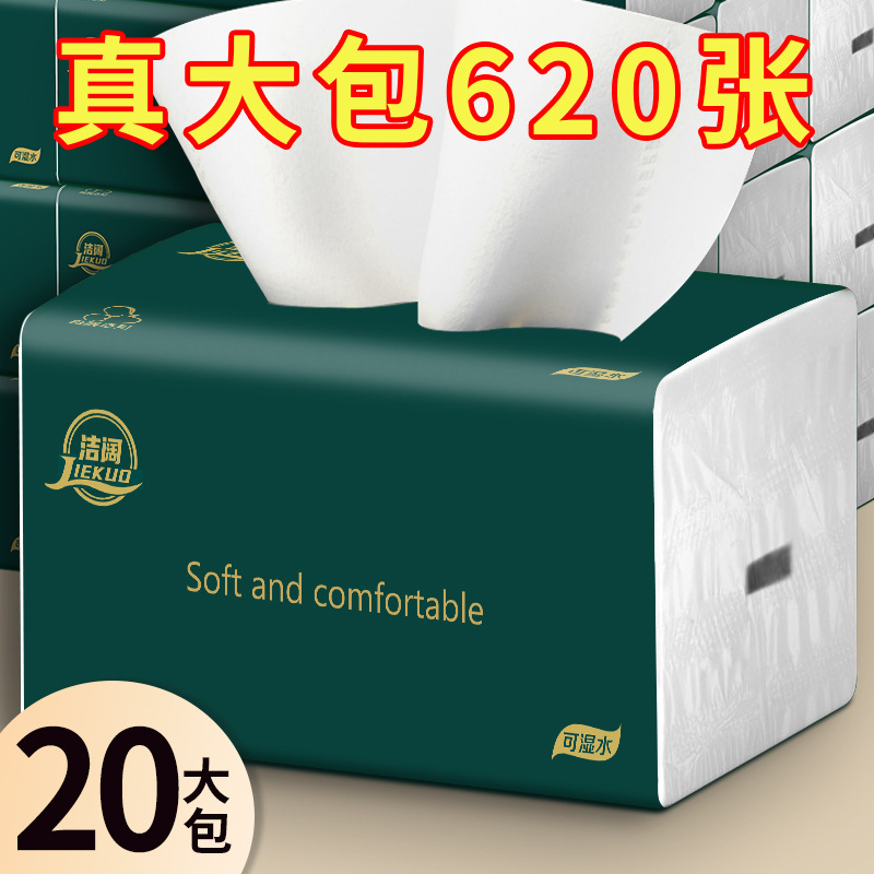 【620枚 + 量入れ】20パックのフルパックの大きな袋から紙を引き出します。5層の厚手で紙を引き出します。家庭用の乾湿両用ティッシュです。