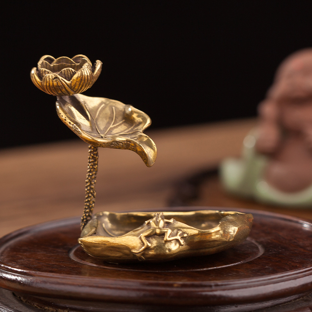 真鍮蓮カエル蓮の葉逆流香ベースディスク香立てリビングルームクリエイティブレトロ禅茶道銅装飾品