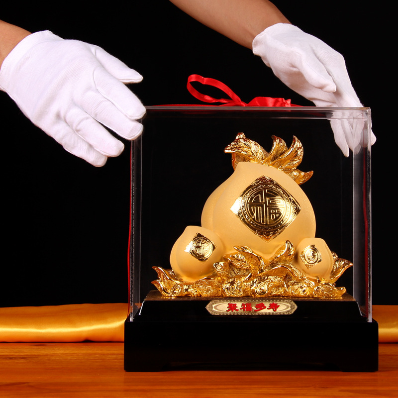 サンドゴールドソリッド小インゴットデスクトップ装飾品ギフト百福瓶宝の盆地火龍ボトル装飾工芸品