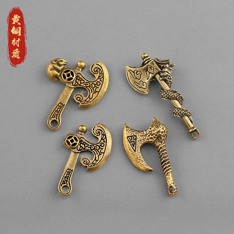 真鍮ソリッド斧キーホルダーペンダントクリエイティブレトロ古い祝福の言葉斧車のキー縁起の良いペンダント
