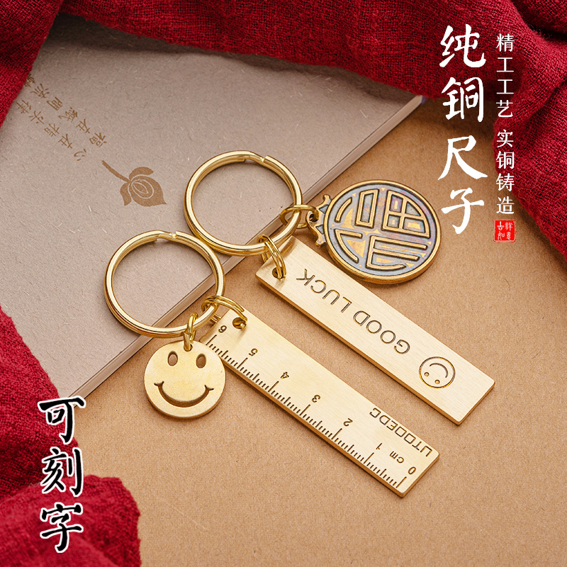 純真鍮ポータブルストレート定規、1周年記念ミニ定規、刻印入り純銅サバイバルキーホルダーペンダント