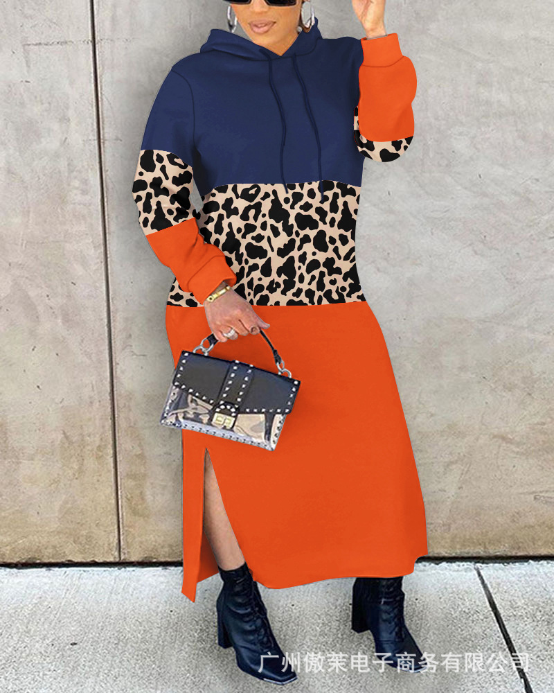 2023新型婦人服春夏新作ステッチ衝突色帽子付きパーカースカート