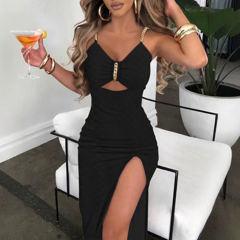 2023年新型現物モデル欧米は国境を越えたセクシーな浅ジャカード生地のストラップチェーンの透かし彫りパーティースカートを装着した