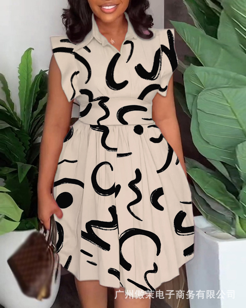 2023春夏の越境新型女性ebayアマゾンプリントのハスの葉の袖のワンピース